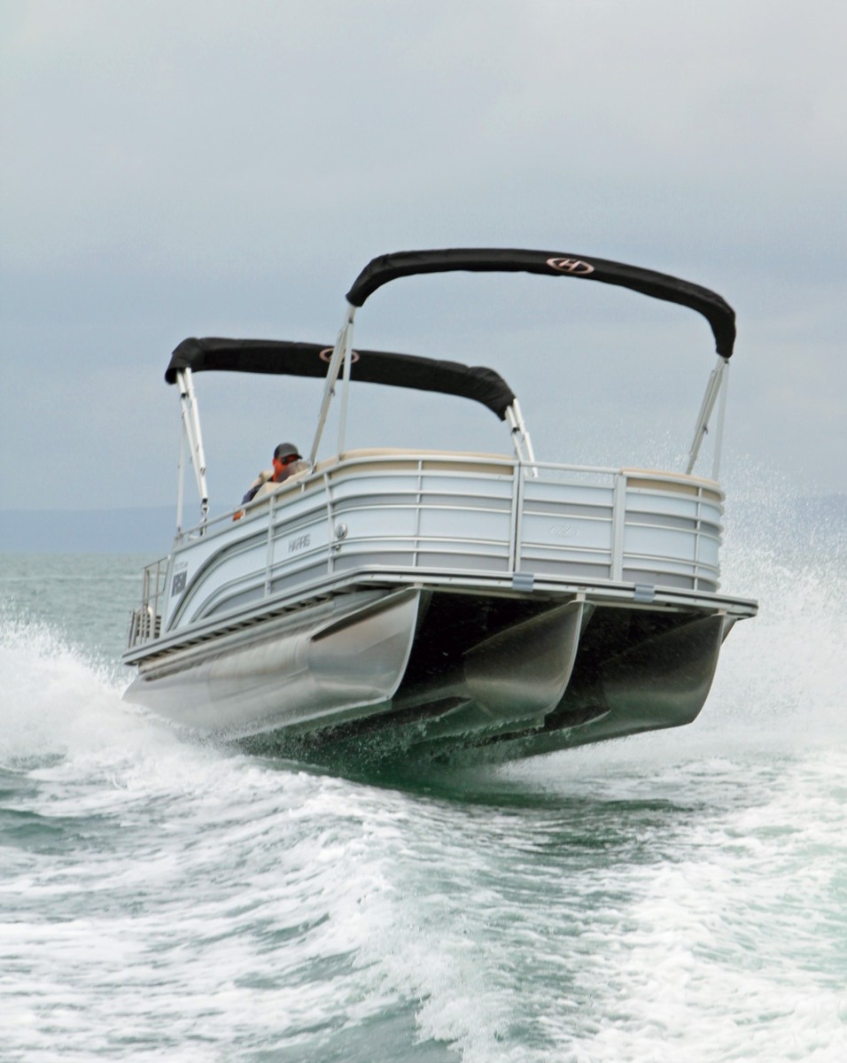 Both fibreglass and aluminium are tremendous materials for boatbuilding. They can be formed, rolled, pressed or moulded to create hydrodynamically improved hull shapes to suit the purpose. Simply put, aluminium is lighter than the equivalent strength in fibreglass, so the design must have either a wider beam, more stabilising strakes and chines, a shallower V or deadrise, or introduced ballast – and/or a combination of each. The only other option would be to use thicker-section alloys, but there are limits to practical rolling and forming alloys. Lighter-weight hulls actually have some advantages, particularly in trailer boats.